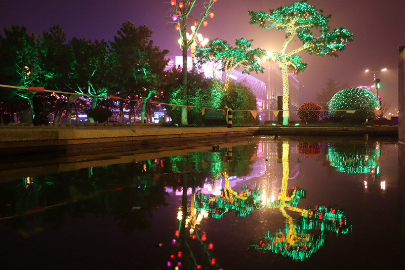 威海市府广场和幸福公园的灯光