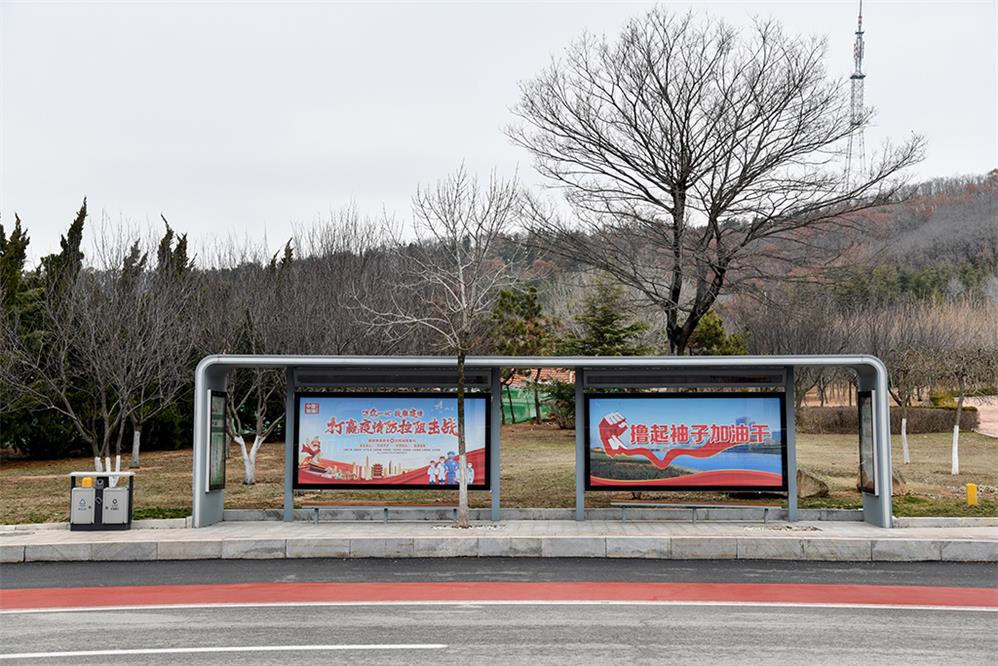 2020年摄于威海市文登区,疫情之下,公交车停止运营状况下的公交站点的现状。