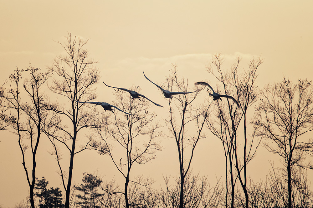 2019年12月24日拍摄于威海荣成天鹅湖。寒林列队送鹄去,天鹅成行别林归
