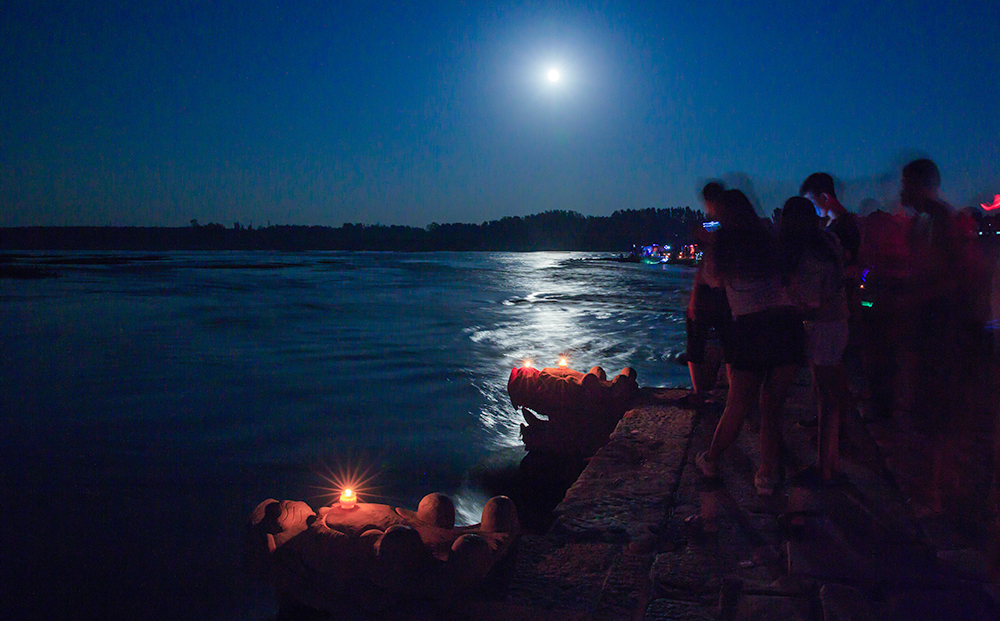 2019年8月15日,拍于泰安市岱岳区大汶口镇明石桥。每年七月十五(中元节),泰安市岱岳区大汶口村民都要到明石桥上放河灯,以缅怀纪念逝去的故人,是泰安市非物质文化遗产。