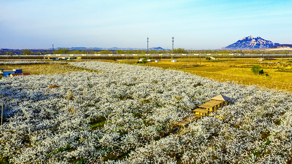 高铁飞驰过梨园